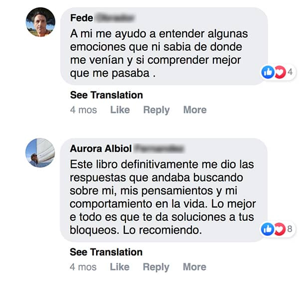 “Mientras leía el libro, me di cuenta de cosas a diario. Pude ver la condición física y emocional de mis familiares inmediatos, compañeros y buenos amigos, y logré comprenderlos mejor. Me he vuelto más equilibrado. He logrado crear más resultados más positivos con mucho menos esfuerzo. Mi vida es más tranquila. Atraigo situaciones y personas que me ayudan a sobrevivir mucho mejor y siento que esto es solo el comienzo”.